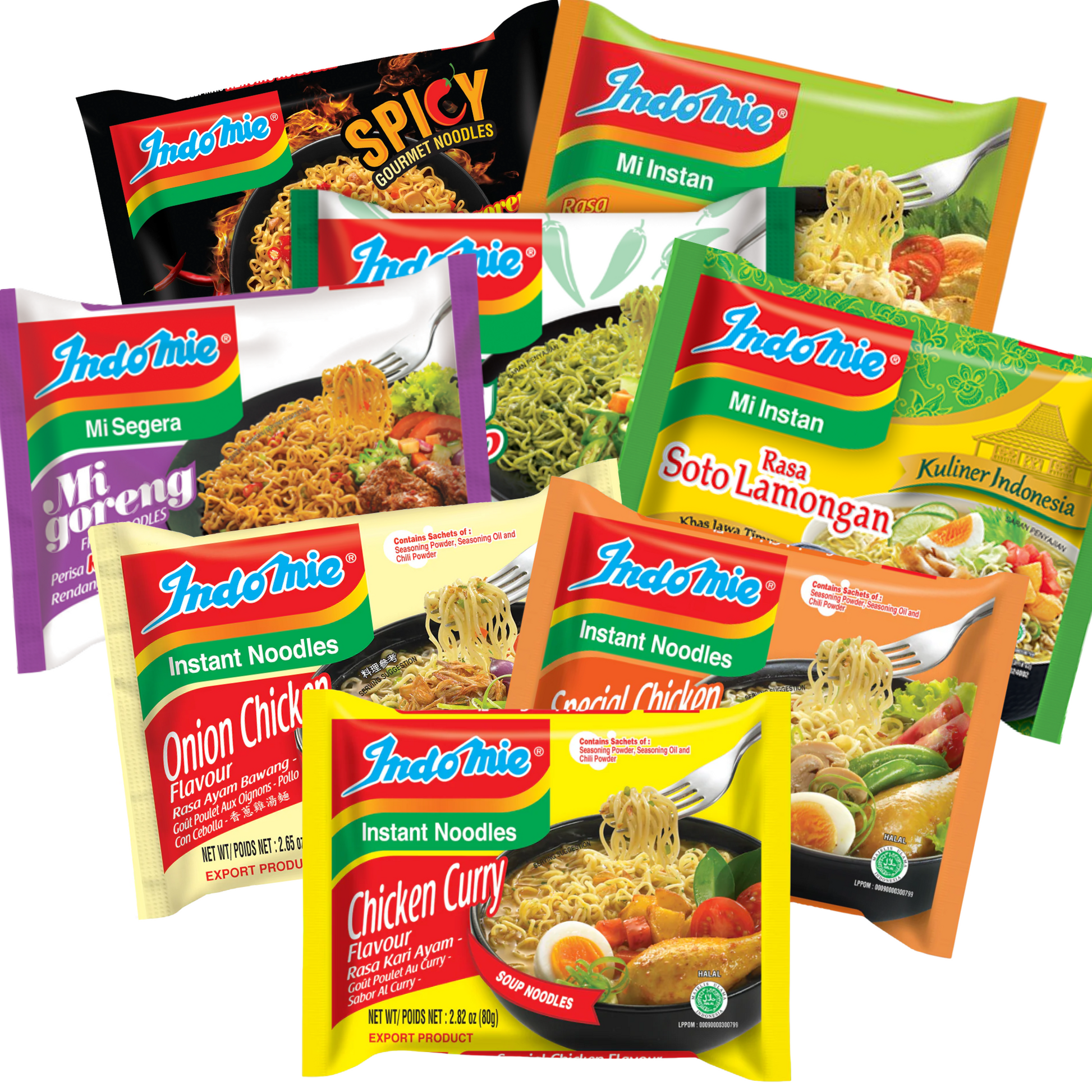 - Each box includes 8 individual packets of Indomie instant ramen. Each one is a different mouth watering flavour!